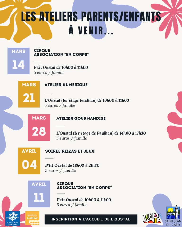 Veuillez trouver ci-dessous les programmes proposés par l’Oustal de Saint-Jean-Du-Gard